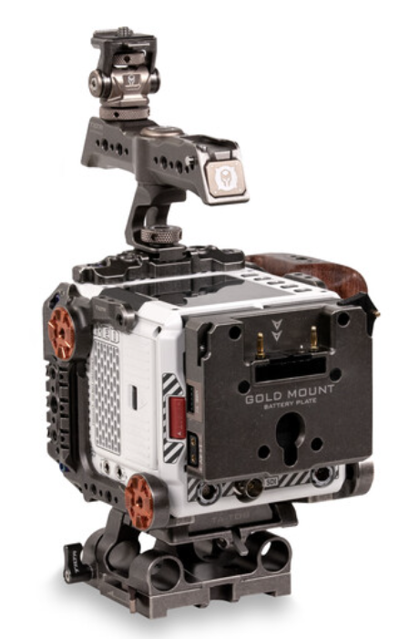 Ploča za baterije Gold Mount nudi profesionalno rješenje za napajanje, što KOMODO sustav čini prikladnijim za dugometražne produkcije. S drvenom ručkom s desne strane za poboljšanu ergonomiju, gornjom ručkom za brzo otpuštanje za dinamičan rad s gornje strane, nagibnim nosačem za monitor s hladnim papučicom, osnovnom pločom LWS od 15 mm i pločom za brzo otpuštanje tipa Arca, ovaj komplet oprema vaš KOMODO za gotovo svaki produkcijski scenarij.