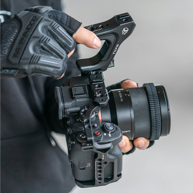 Ova gornja ručka lako se i sigurno pričvršćuje na vrh punog okvira kamere Sony a7 IV.