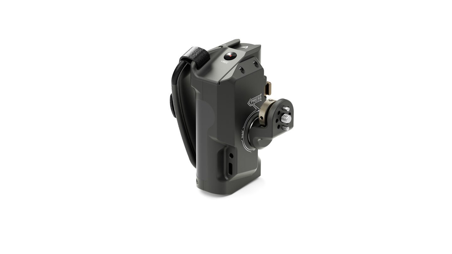 Ova napredna ručka pričvršćuje se na lijevu stranu okvira Tiltaing fotoaparata. Priključak za bateriju na dnu ručke omogućuje vam korištenje Sony F570 baterije za napajanje raznih dodataka putem 8V USB-C i 12V DC izlaza.