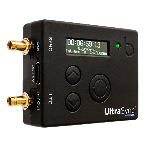 Model UltraSync ONE vrlo je lagan, kompaktan (55 x 44 x 17,39 g) uređaj za sinkronizaciju s OLED zaslonom, unutarnjim antenama i trajanjem baterije od preko 25 sati. Nudi sve potrebne modove sinkronizacije (vremenski kod, Genlock i Word Clock) i može raditi u modu generatora preciznog vremenskog koda ili kao slave eksternog LTC generatora. Također se može spojiti na BLINK Hub pomoću Timecode Systems :pulse ili :wave uređaja za praćenje statusa i daljinsko upravljanje.