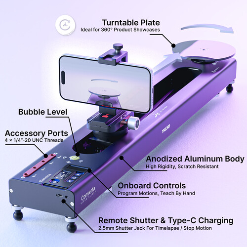 Trexo Converta 600 Essential je motorizovaný posuvník s nejmodernějšími funkcemi, který byl navržen pro tvůrce vyžadující inteligentní pohyb a větší dosah. S délkou 33,5" a vzdáleností pojezdu 25,6" umožňuje plynulý filmový pohyb pro těžší kamerové soupravy v horizontální i vertikální orientaci.