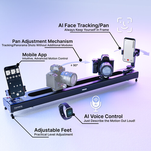 Trexo Converta 600 Essential je výkonný motorizovaný posuvný fotoaparát s umělou inteligencí, možností otáčení o 90°, sledováním obličeje a hlasovým ovládáním. S prodlouženou vzdáleností pohybu 25,6" a nosností 22 lb je zkonstruován pro profesionální pohyb v horizontálním i vertikálním nastavení.