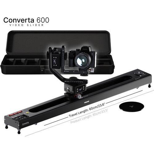 Trexo Converta C600 Complete je sve-u-jednom motorizirani klizni sustav kamere napravljen za ozbiljne kreatore i filmaše. Uz duljinu od 33,5" i udaljenost putovanja od 25,6" , omogućuje glatko vodoravno ili okomito kretanje kamere, poboljšano funkcijom pomicanja od 90° i integriranim okretnim postoljem od 360° za snimke s dinamičkom rotacijom.
