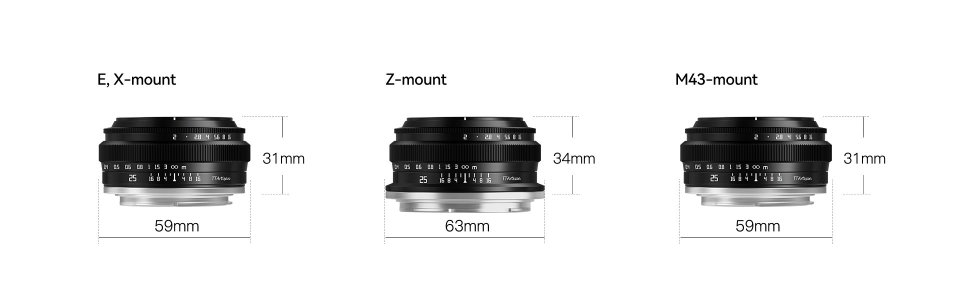 MFT-montaža | Olympus: EPM1、EPM2; EPL1、EPL2、EPL3、EPL5、EPL6、EPL7、EPL8、EPL9、EPL10; E-P1、E-P2、E-P3、E-P5、E-P6、E-P7; E-M1、E-M1II、E-M1III、E-M1X; E-M5、E-M5II、E-M5III; E-M10、E-M10II、E-M10III、E-M10IV; OM-1、OM-1II、OM-5; PEN-F, itd. |
