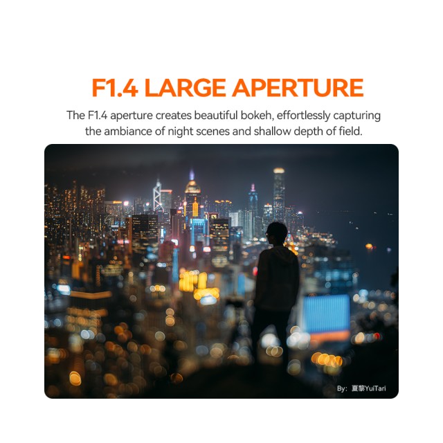 S kutom gledanja od 45° , žarišna duljina od 35 mm nudi prirodnu perspektivu savršenu za uličnu, portretnu i produktnu fotografiju. Brzi otvor blende f/1.4 pruža izvrsne performanse pri slabom osvjetljenju i bogat bokeh. Izgrađen sa 7 elemenata u 6 grupa , ovaj kompaktni objektiv održava optičku oštrinu, a istovremeno korisnicima daje potpunu ručnu kontrolu nad fokusom i ekspozicijom.