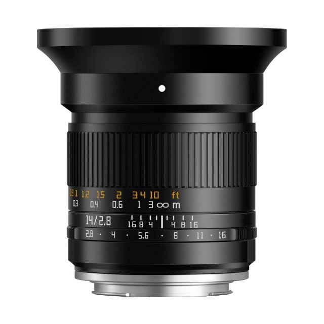 Objektiv TTArtisan MF-FF14mm F2.8 dizajniran je za full-frame senzore . Nudi samo ručno fokusiranje , a minimalna udaljenost fokusiranja je 0,2 metra. Boja: crna. Ova verzija ima Sony E bajonet.