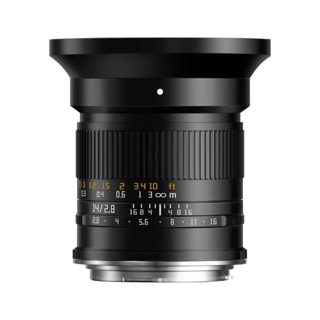 Objektiv TTArtisan MF-FF14mm F2.8 dizajniran je za full-frame senzore . Nudi samo ručno fokusiranje , a minimalna udaljenost fokusiranja je 0,2 metra. Boja: crna. Ova verzija ima Canon RF nosač.