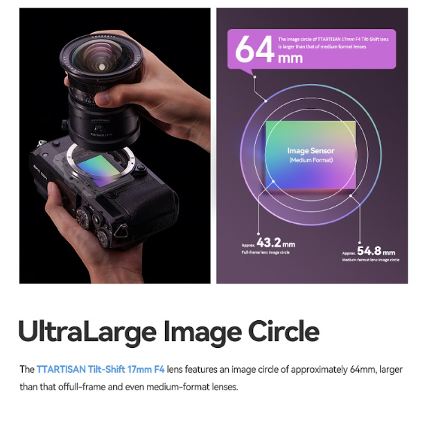 TTArtisan Tilt Shift 17 mm f/4 Z objektiv je ultraširokokutni objektiv s ručnim fokusom namijenjen punokadrovim Z-mount fotoaparatima. S mogućnošću nagiba do 8°, kutom vidnog polja od 104° i složenom optičkom konstrukcijom od 17 elemenata, idealan je za arhitekturu, pejzaže i kreativnu kontrolu perspektive u fotografiji.