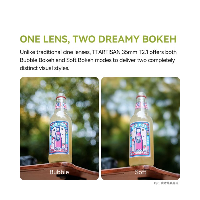 Za razliku od tradicionalnih filmskih objektiva, TTARTISAN 35mm T2.1 nudi i Bubble Bokeh i Soft Bokeh načine rada kako bi pružio dva potpuno različita vizualna stila.