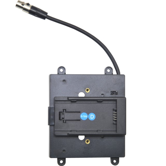 Napajajte svoj F-7H monitor Panasonicovim baterijama serije CGA/VB pričvršćivanjem ovog držača baterija tvrtke TVLogic. Držač baterija serije Panasonic CGA/VB pričvršćuje se na stražnju stranu monitora F-7H i spaja na 4-pinski XLR priključak za napajanje mini monitora. Omogućuje napajanje od 12 VDC, 3A.