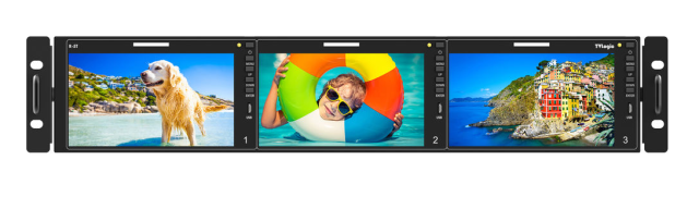 Tri 5,5-inčna LCD monitora Full HD 1920 x 1080 u 2U rackmount konfiguraciji