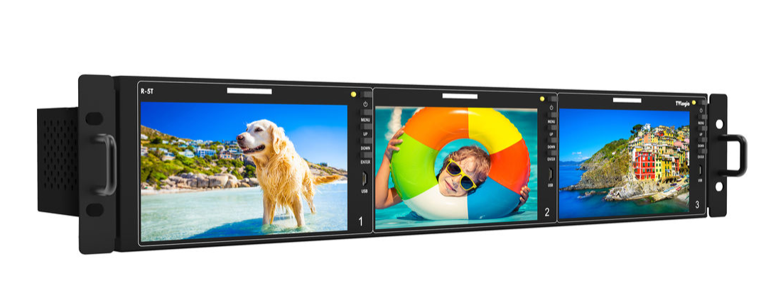 TVLogic TVL-R-5T je profesionalni 2U rackmount komplet koji sadrži tri 5,5-inčna Full HD monitora s 12G-SDI, 3G-SDI i HDMI 1.3 ulazima. Svaki monitor pruža oštru rezoluciju 1920 x 1080 pri svjetlini do 500 cd/m², s naprednim video alatima uključujući prikaz valnih oblika, vektorskop, prikaz timecodea i praćenje razine zvuka za precizne postavke s više kamera.