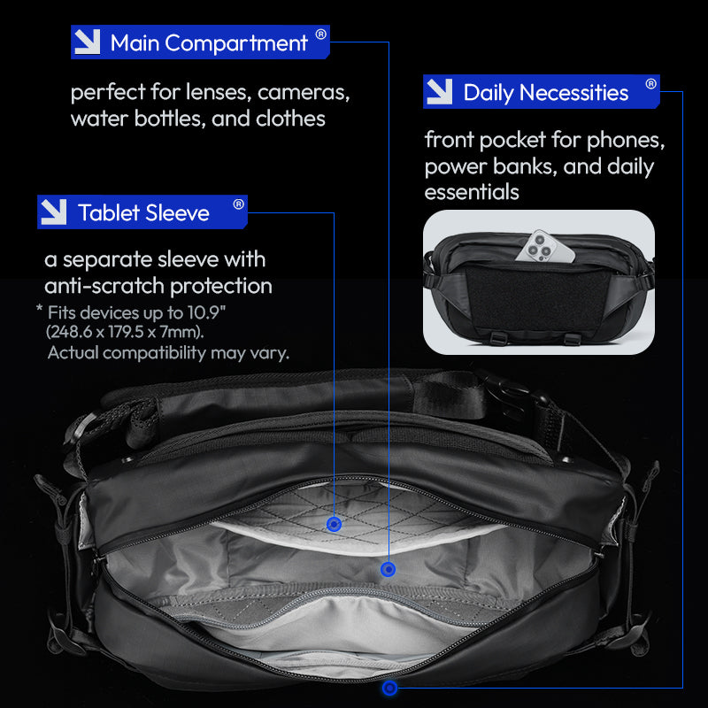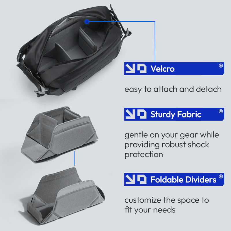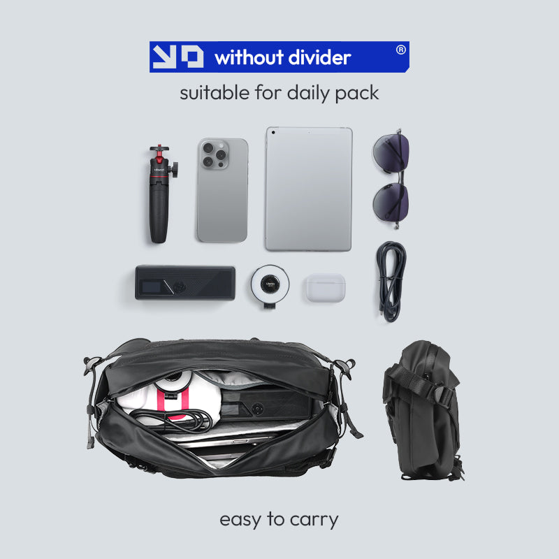Ulanzi AB02 Torba za preko ramena za vanjske aktivnosti 9L Katalog B122 Izdržljiva i svestrana torba za preko ramena od 9L savršena za avanture na otvorenom i svakodnevna putovanja na posao. Prostran glavni pretinac i više džepova drže vašu opremu organiziranom i dostupnom. Lagan i udoban dizajn s podesivim remenom za cjelodnevno nošenje. Idealna za fotografe, putnike i ljubitelje prirode. Nabavite svoju odmah.