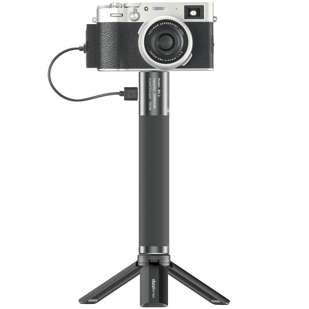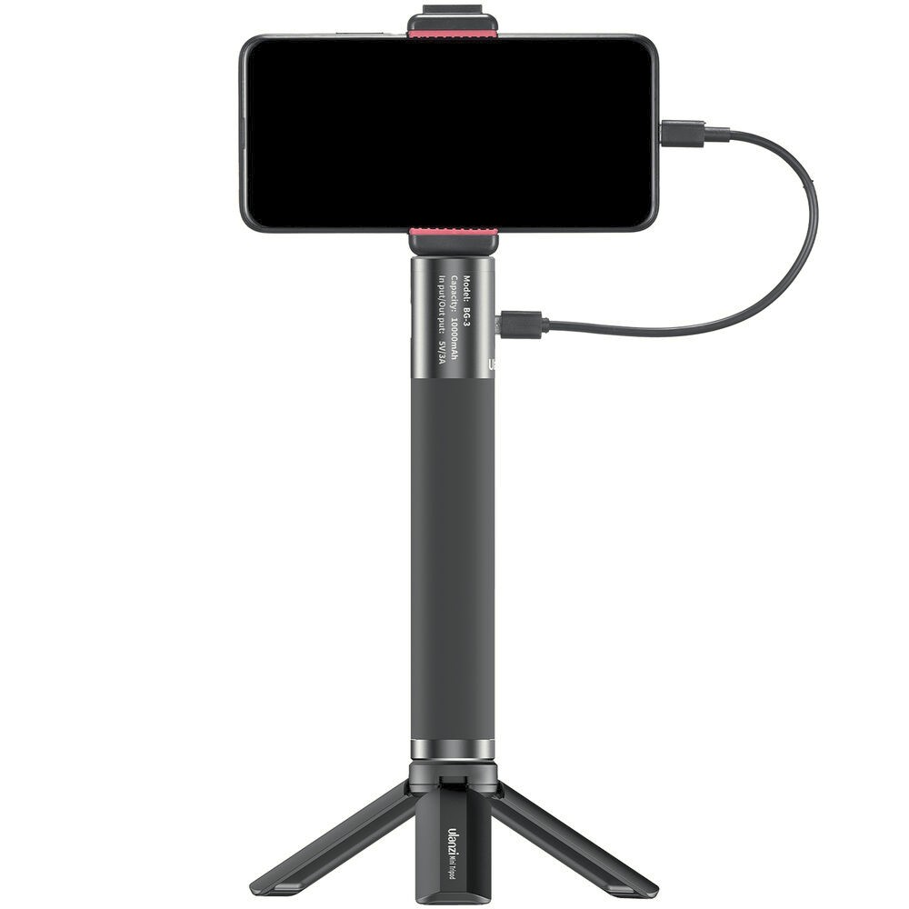 Ulanzi BG-3 Power Handgrip kombinira mogućnost punjenja, ergonomsku upotrebu i funkcionalnost stativa u jednom prijenosnom uređaju. Opremljen baterijom od 10.000 mAh, može puniti vaš pametni telefon, fotoaparat ili druge uređaje na USB napajanje putem dvosmjernog USB Type-C priključka ili USB Type-A izlaza. Drška je udobna za držanje zahvaljujući vanjskoj površini od silikona, što olakšava snimanje videa, vlogova ili prijenosa uživo u ruci, čak i u svim vremenskim uvjetima.