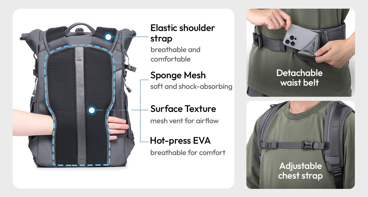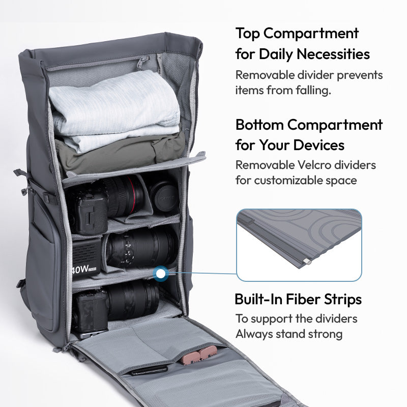 Ruksak za kameru s tvrdim oklopom i ugrađenom U-oznakom za praćenje. Besprijekorno integriran s Apple Find My Network, omogućuje vam praćenje vaših predmeta na iPhoneu, iPadu i Macu. Vruće prešana EVA pjena osigurava vrhunsku otpornost na udarce i kompresiju, donoseći vam bezbrižnost na putovanju.