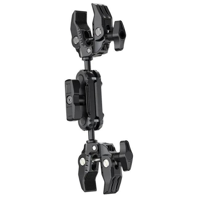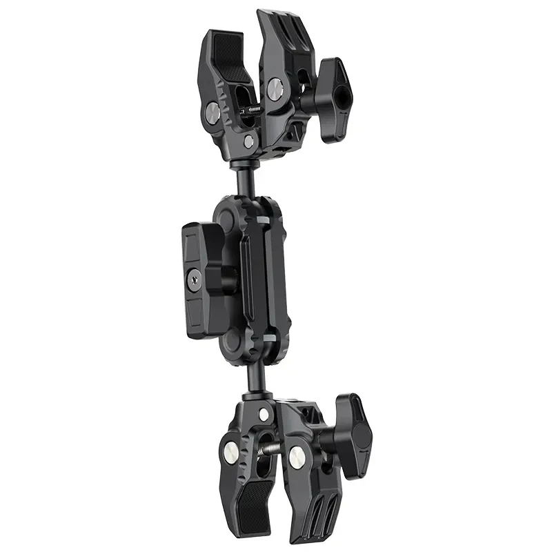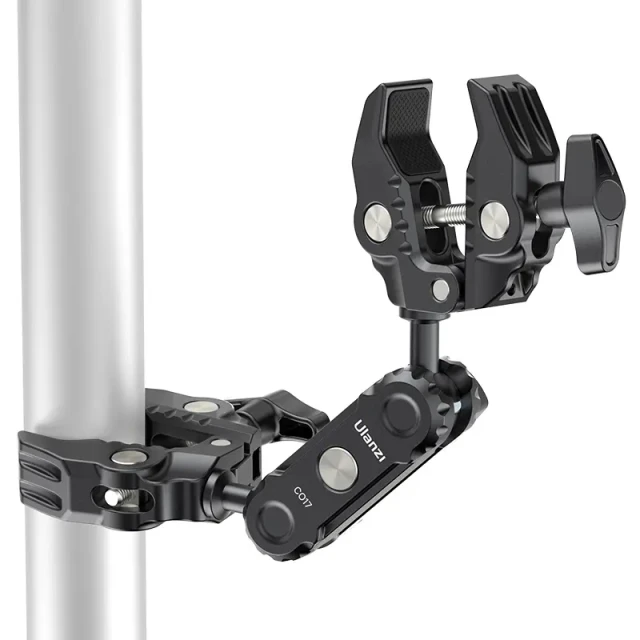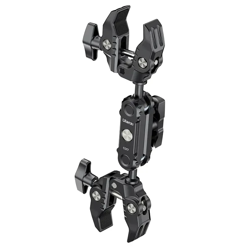 Ulanzi CO17 Super stezaljka s dvostrukom kuglastom glavom i magičnom rukom . Ova svestrana Super stezaljka lako se pričvršćuje na motocikle, bicikle, tronošce, stolove i još mnogo toga. Njezin protuklizni dizajn osigurava sigurno prianjanje na površinama širine od 1,2 cm do 5,8 cm. Dvostruka kuglasta glava nudi fleksibilno podešavanje od 360°, pružajući svestrane kutove snimanja. Možete mijenjati kuglaste glave kako biste proširili svoje mogućnosti, s nosivošću od 3,5 kg. Izrađena od lagane, ali izdržljive aluminijske legure, savršena je za putovanja i svakodnevnu upotrebu. Super stezaljka za super fleksibilnost.
