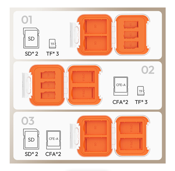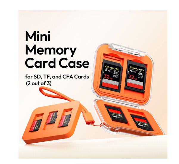 Ulanzi C055 CC01 mini futrola za memorijske kartice nudi kompaktno i izdržljivo rješenje za pohranu i zaštitu vaših SD, microSD i CFexpress kartica. S izmjenjivim silikonskim umetcima, vanjštinom od polikarbonata otpornom na udarce, otpornošću na prskanje i prašinu te uključivanjem remena za jednostavan prijevoz, ova futrola održava vaše memorijske kartice organiziranima i sigurnima.