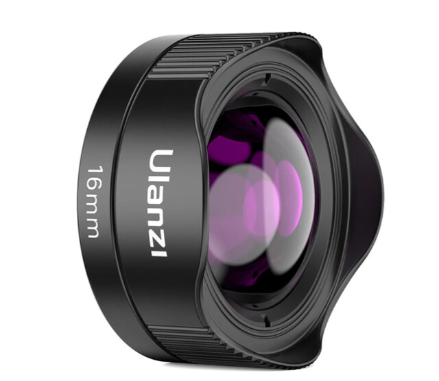 Ulanzi F008 CL-005 Ultra širokokutni objektiv 3. generacije za mobilne telefone vrhunski je objektiv na kopču dizajniran za iPhone, Android i Samsung telefone. Sa žarišnom duljinom od 16 mm i kutom vidnog polja od 110°, ovaj objektiv omogućuje širokokutne snimke s minimalnom distorzijom. Ima visokokvalitetno optičko staklo, aluminijsku konstrukciju i minimalnu udaljenost fokusa od 1,2 inča. Priloženi držač objektiva ima hladni prsten za dodatne dodatke.