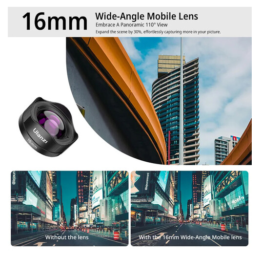 Ulanzi F008 CL-005 Ultra širokokutni objektiv 3. generacije za mobitele dizajniran je da poboljša vaše iskustvo mobilne fotografije, nudeći ultra širokokutne snimke iznimne jasnoće i minimalne distorzije. S žarišnom duljinom od 16 mm i širokim kutom vidnog polja od 110°, ovaj objektiv s lakoćom bilježi prostrane prizore, što ga čini idealnim za pejzaže, grupne fotografije ili arhitektonsku fotografiju. Leća pruža 0,5x uvećanje i ima optički dizajn od 6 elemenata u 5 grupa kako bi osigurala vrhunske performanse slike s živopisnim bojama i oštrim detaljima.