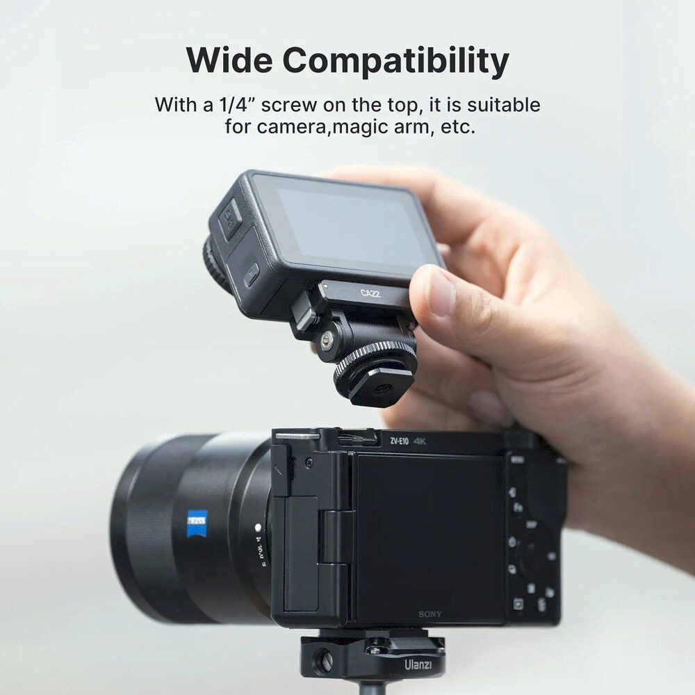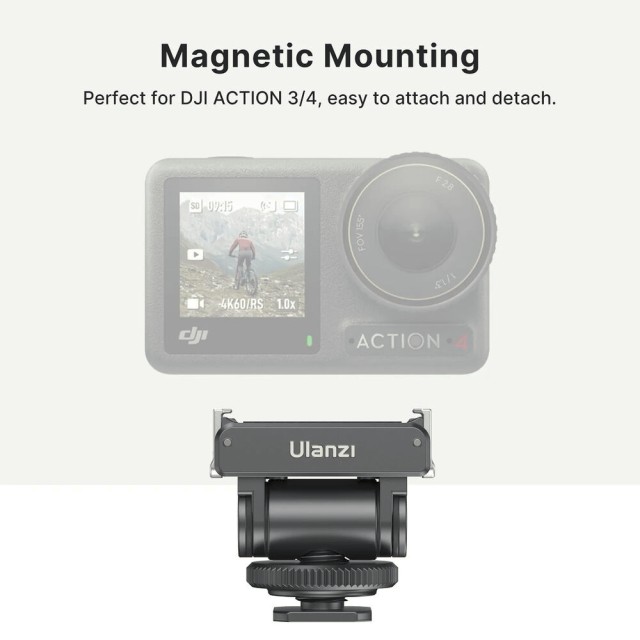 Ulanzi adapter za hladnu stopicu je kompaktno i izdržljivo rješenje za montažu, posebno dizajnirano za DJI Osmo Action 3, Action 4 i Osmo Pocket 3 u kombinaciji s kompatibilnim Ulanzi adapterom za proširenje (prodaje se zasebno). Omogućuje kreatorima da svoju kameru montiraju izravno na hladnu stopicu, što ga čini idealnim za upotrebu s kavezima za kameru, magičnim rukama, mikrofonima i rasvjetnim postavkama.