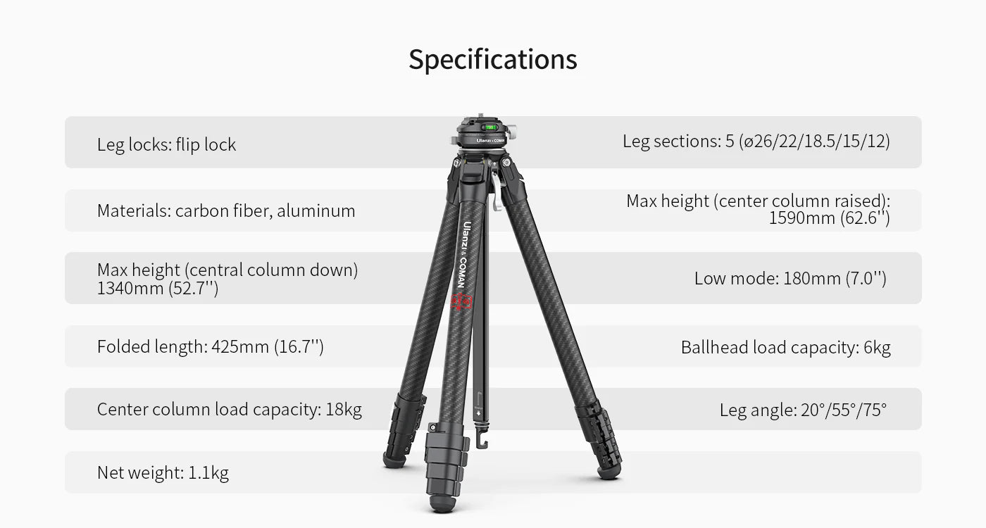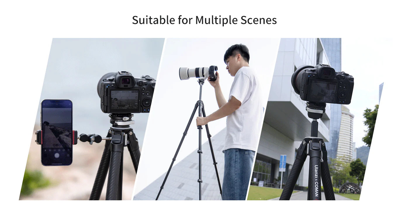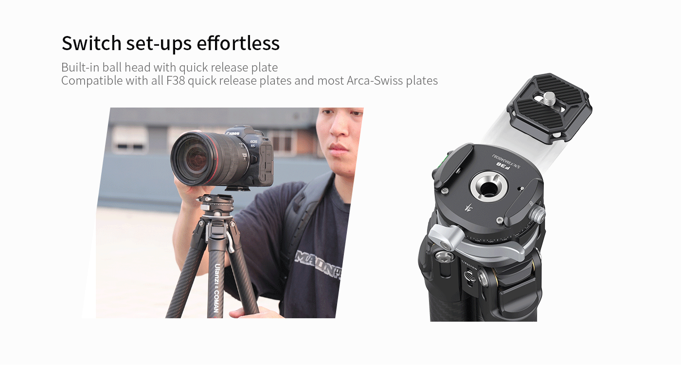 Ulanzi Zero F38 putni stativ s brzim otpuštanjem : Snimite zapanjujuće vizualne efekte u pokretu s ovim kompaktnim i laganim (1,1 kg) putnim stativom od karbonskih vlakana. Bez napora mijenjajte postavke zahvaljujući ugrađenoj kuglastoj glavi i F38 ploči za brzo otpuštanje , dok priloženi dodatni središnji stup nudi kompatibilnost s Arca-Swiss standardom za vrhunsku fleksibilnost. Snimajte iz različitih kutova s podesivim položajima nogu (20°/55°/75°) i uklonjivim kratkim stupom za snimke iz niskog kuta. Ulanzi Zero F38 izrađen je za dugotrajnost, podržava do 18 kg i ima sve dijelove koji se mogu servisirati s doživotnim jamstvom . Oslobodite svoju kreativnost i zabilježite nezaboravne trenutke gdje god se nalazili!