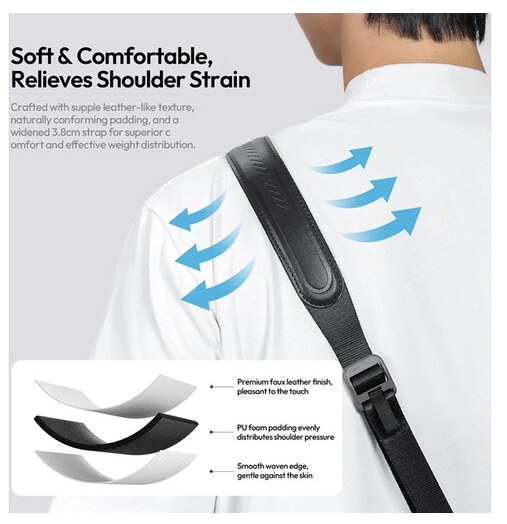Ulanzi CSS1 U-Snap remen za kameru preko ramena u boji ponoćnoplava spaja udobnost, čvrstoću i praktičnost. Zahvaljujući sustavu brzog otpuštanja, podstavljanju vrhunskom umjetnom kožom i podesivoj dužini, pouzdano podupire kamere težine do 132 lb, istovremeno osiguravajući udobnost tijekom dugih snimanja.
