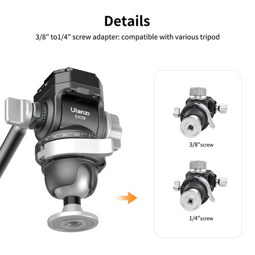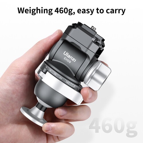 Ulanzi EH09 obrnuta kuglasta glava precizno je izrađena i kompatibilna s Arca-Swiss standardom, idealna za fotografe koji traže glatko horizontalno i vertikalno snimanje. Podržava do 5 kg (11 lb), nudi nagib od 118°, panoramiranje od 360°, dvostruke mjehurićne razine i odvojivu ručku s višenamjenskim alatom, što je čini svestranom, prenosivom i savršenom za snimanje u pokretu.