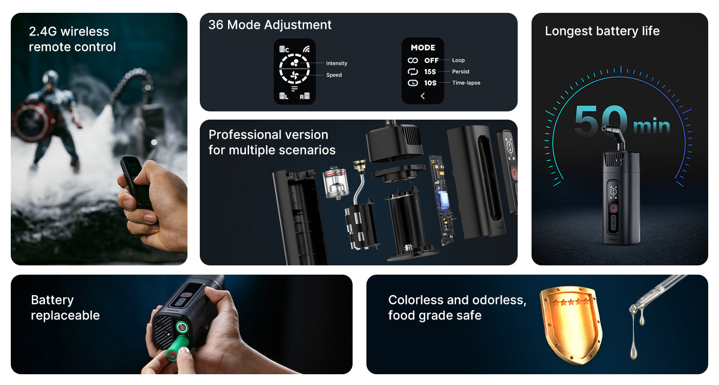 Ulanzi FM01 FILMOG Ace prijenosni stroj za maglu , stroj za dim s 36 efekata magle različitih intenziteta, magla od 40 W s daljinskim upravljačem (do 10 metara), prijenosni ručni generator magle, savršen za fotografiranje, događaje na otvorenom, zabave, scenske efekte, Noć vještica ili vjenčanja.