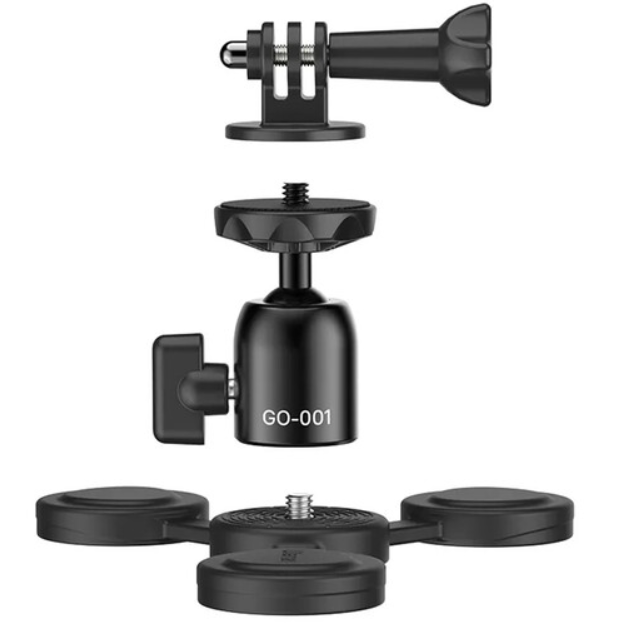 Ulanzi GO-001 magnetski nosač je trokutasti nosač akcijske kamere od 267 g s četiri ojačana magneta (opterećenje 600 g), kuglastom glavom s okretanjem od 360°, navojem od 1/4"-20 i konstrukcijom od silikona/aluminija otpornom na ogrebotine - što osigurava stabilnu i fleksibilnu montažu na metalne površine s brzim prebacivanjem između portretnog/pejzažnog načina rada.