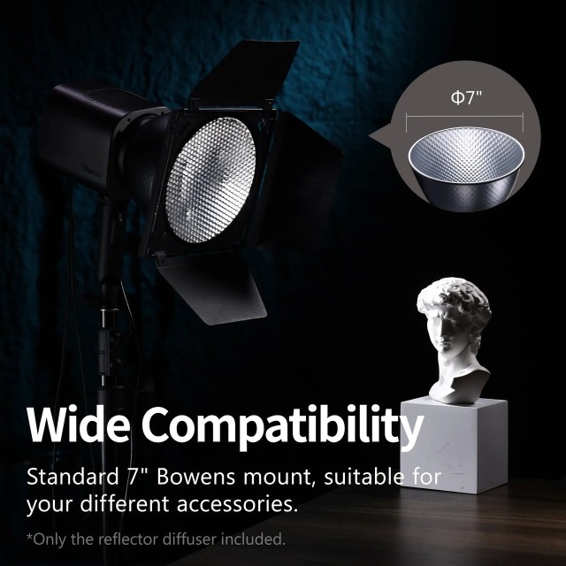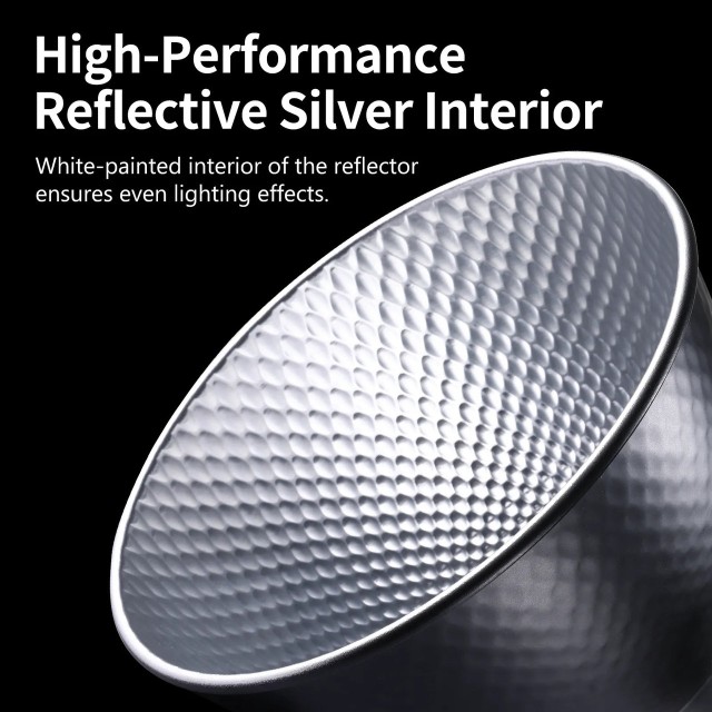 Ulanzi HT002 7-inčni standardni Bowens reflektor-difuzor je lagan i izdržljiv aluminijski reflektor dizajniran za svjetla s Bowens priključkom. Njegova unutrašnjost obložena reflektirajućim srebrom i obojena u bijelo osigurava ravnomjerno, meko svjetlo, što ga čini idealnim za fotografiju, videografiju i snimanje u pokretu.