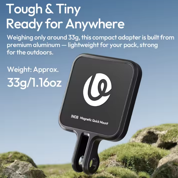 Ulanzi IN08 magnetski adapter za GO Ultra svestran je dodatak namijenjen kreatorima koji žele fleksibilne i sigurne opcije montaže za svoju akcijsku kameru. Dizajniran posebno za GO Ultra, ovaj adapter ima snažan magnetski sustav pričvršćivanja koji osigurava brzu instalaciju i stabilne performanse tijekom dinamičnih aktivnosti kao što su vožnja biciklom, vloganje, snimanje kućnih ljubimaca i obiteljske pustolovine.
