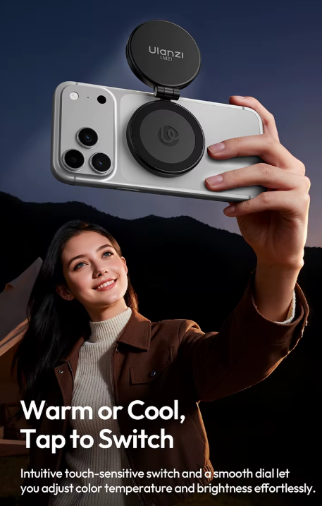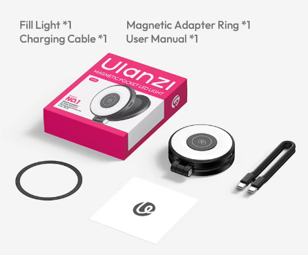 Ulanzi LM21 magnetsko svjetlo za popunjavanje svestran je dodatak za osvjetljenje namijenjen kreatorima kojima je potrebno pouzdano osvjetljenje u kompaktnom obliku pogodnom za putovanja. Dizajnirano s kompatibilnošću s MagSafeom, lako se pričvršćuje na podržane iPhone uređaje ili magnetske maske za telefone, pružajući trenutačno osvjetljenje za selfieje, snimanje videozapisa, prijenose uživo i video pozive.