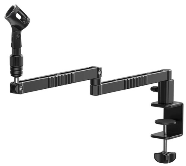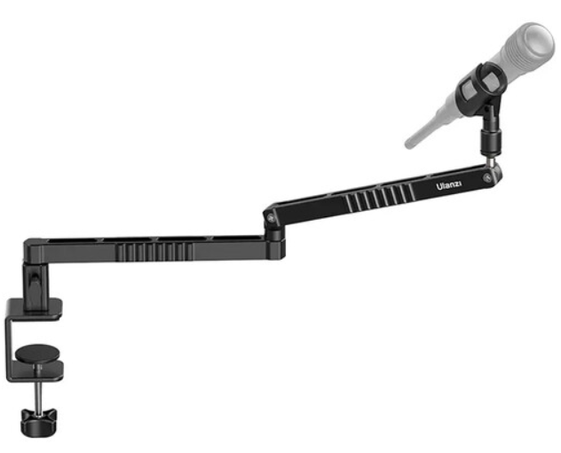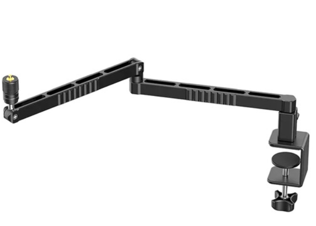 Poboljšajte svoj audio tijek rada s Ulanzi LS26 niskoprofilnom produljivom mikrofonskom rukohvatom, kompaktnim, ali robusnim rješenjem prilagođenim podcasterima, streamerima i izvođačima kojima je potrebna montaža s niskom vidljivošću bez žrtvovanja dosega ili prilagodljivosti. Izrađen od laganog aluminija u mat crnoj završnoj obradi, ovaj dvostupanjski nosač mikrofona proteže se do 49,3 cm horizontalno - sastoji se od glavnog nosača od 35,4 cm i sekundarnog produžetka od 24,1 cm - za precizno pozicioniranje mikrofona iznad stolova ili podija, osiguravajući vam kontakt očima s gostima ili ekranima tijekom live sesija. S glatkim kontrolama na vijcima, nudi iznimnu mobilnost: vertikalni nagib nosača od 180° za podešavanje visine od maksimalno 9,4 cm do minimalno 13,7 cm, horizontalno pomicanje od 360° za široku pokrivenost i potpuni zakret od 300° na odvojivom držaču mikrofona za fino podešavanje kutova bez napora. Integrirana C-stezaljka sigurno se pričvršćuje na površine dubine do 5 cm, s mekim protukliznim podlogama za zaštitu namještaja, a istovremeno pruža nepokolebljivu stabilnost za opterećenja između 75-100 kg. Svestranost se ističe standardnim muškim navojem za montažu mikrofona od 1/4"-520, plus uključenim adapterima za postavke od 3/8"-40,4 cm i 14,7 cm, imbus ključem za... sastavljanje i čičak trake za uredno usmjeravanje kabela - iako kabeli nisu u paketu. S težinom od 1,2 kg, LS26 se diskretno sklapa radi pohrane, što ga čini idealnim za mobilne kreatore ili kućne studije gdje su prostor i vidljivost najvažniji.