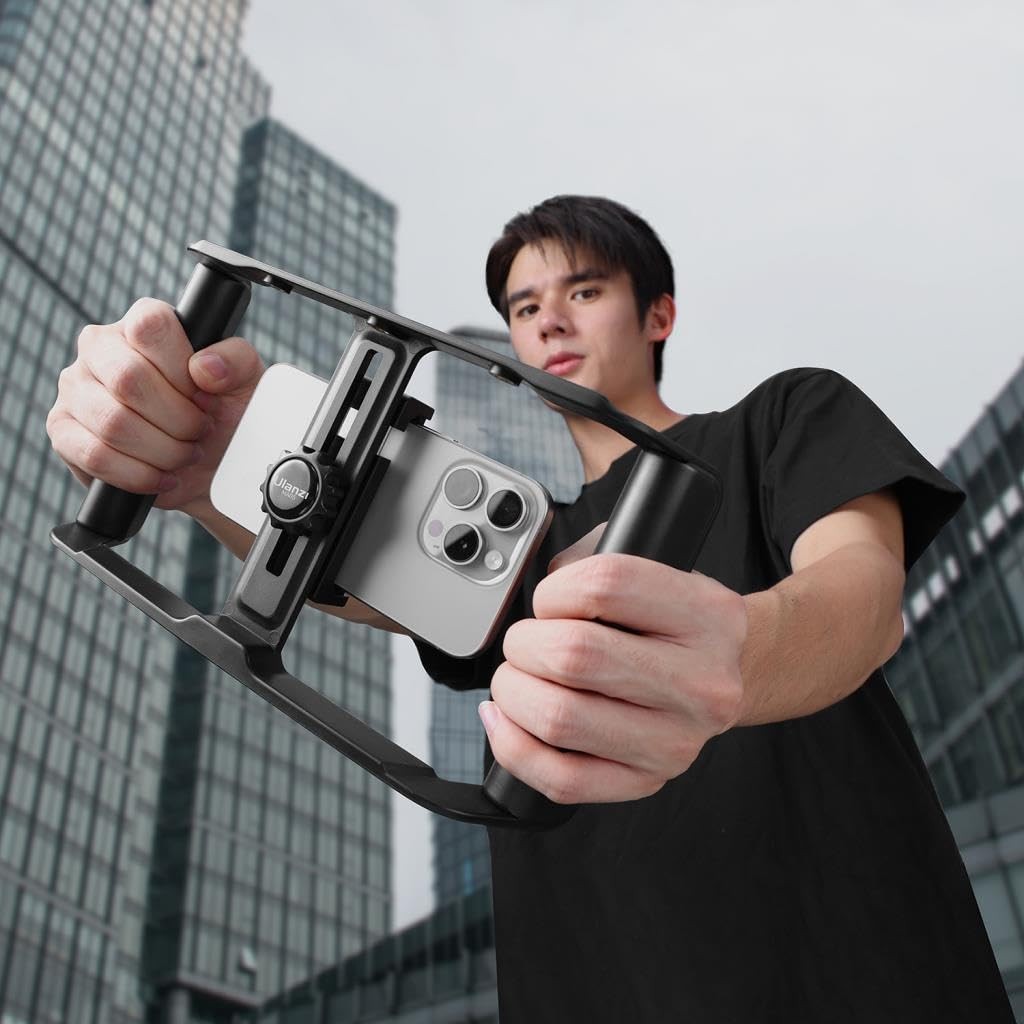 Ulanzi MA05 univerzalni držač za telefon je svestran video-okvir za pametne telefone kompatibilan s telefonima širine od 58 do 89 mm. Idealan za vloganje, prijenos uživo, TikTok, Instagram Reels i profesionalno snimanje filmova na mobitelu, ima vodoravne i okomite načine snimanja, nosače za dodatnu opremu i Bluetooth daljinski upravljač od 10 m za upravljanje bez upotrebe ruku.
