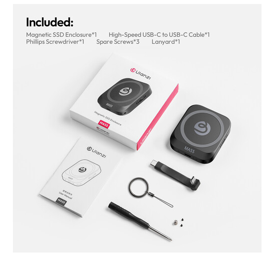 Ulanzi MA55 magnetski SSD kućište je svestrano, brzo pohranjivačko rješenje dizajnirano za profesionalce i kreatore sadržaja. Podržava NVMe M.2 SSD-ove (do 2 TB) i nudi besprijekornu povezanost putem USB-C 3.2 Gen 2 i USB-C PD 3.0 priključaka. S podrškom za snimanje 4K ProRes videa, integriranim ventilatorom za hlađenje i magnetskim montažnim sustavom za jednostavno postavljanje, ovo kućište savršeno je za mobilno snimanje i brzi prijenos podataka.