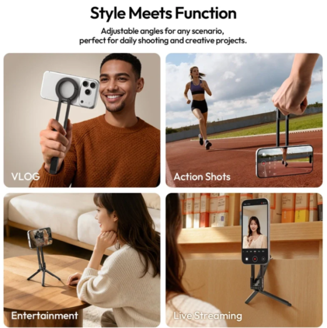 Ulanzi MA57 MagSafe karabiner stativ za telefon S007 kombinira prenosivost, svestranost i stabilnost za vloganje, prijenos uživo i kreativno snimanje. S više načina rada, dvosmjernim MagSafe magnetima i karabinerom za brzo otpuštanje, vaš je telefon spreman za svaki scenarij – u zatvorenom prostoru ili u pokretu.