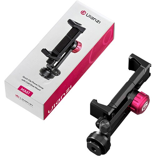 Ulanzi MA61 QuickClip je svestrana stezaljka za telefone koja odgovara pametnim telefonima širine 2,6–3,5 inča, nudi nagib od 180°, rotaciju od 360°, zaključivu hladnu stopicu, priključak 1/4"-20 i dvostruke nosače za hladnu stopicu za proširene postavke opreme.