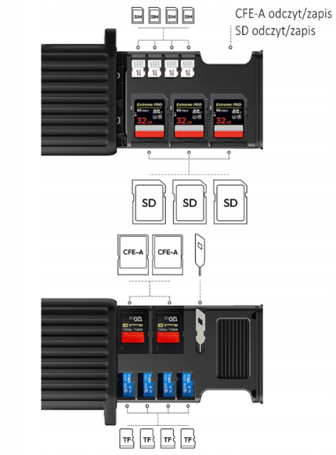 Sve-u-jednom kućište za memorijske kartice s ugrađenim čitačem kartica