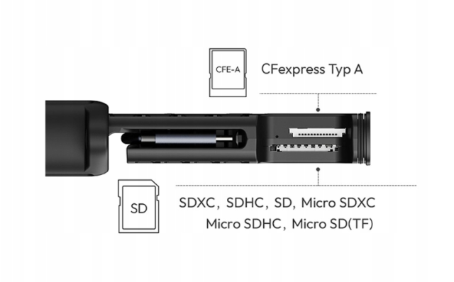 Podržava CFexpress Type A, SD, microSD (TF) i SIM kartice
