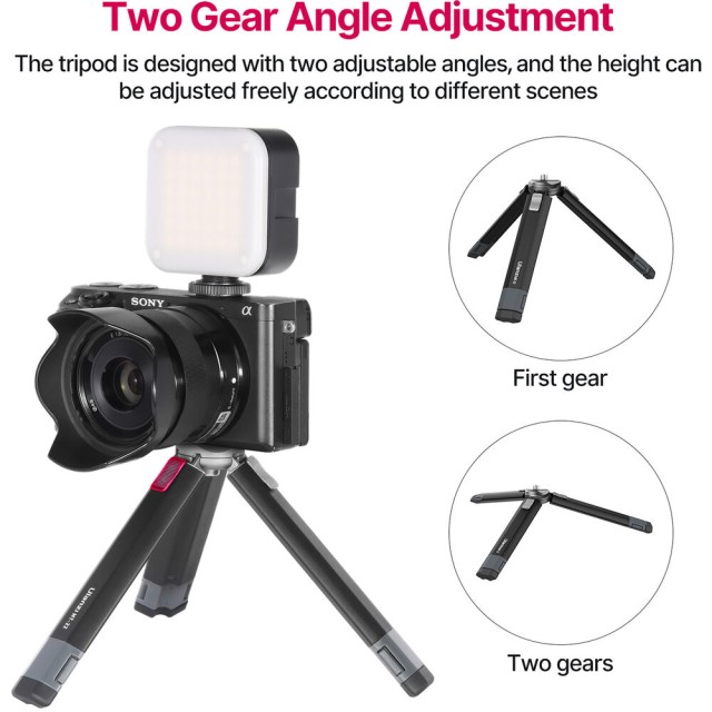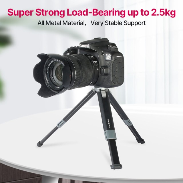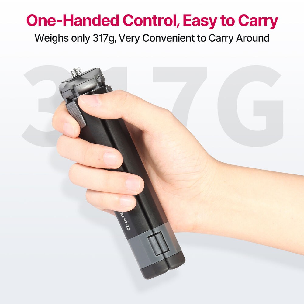 Ulanzi MT-22 je kompaktan, potpuno metalni mini stativ s 1/4"-20 priključkom, koji podnosi do 2,5 kg (5,5 lb). Njegove dvodijelne noge na gurnuti-povuci sustavu omogućuju brzo postavljanje, podesive kutove i snimanje iz niske perspektive, što ga čini savršenim za akcijske kamere, kompaktne bezzrcalne fotoaparate ili web-kamere.