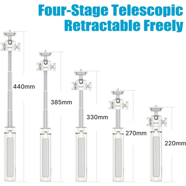 Ulanzi MT-42 produživi stolni stativ elegantno je i prijenosno rješenje za podršku kreatorima kojima je potreban kompaktan, višenamjenski sustav. Izrađen od izdržljivog aluminija i težak samo 6 oz (170 g), MT-42 može poduprijeti uređaje do 4,4 lb (2 kg). Produžuje se do maksimalne visine od 17,3 inča (44 cm) za snimanje na stolu ili videografiju te se sklopi na 8,7 inča (22 cm) za jednostavan transport i pohranu.