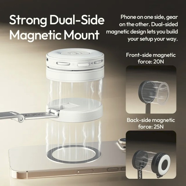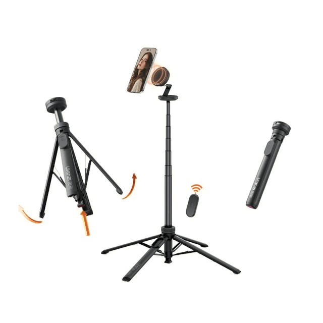 Ulanzi MT85 je automatski stativ za telefon s dvostranom magnetskom montažom kompatibilnom s MagSafeom. Njegov dizajn s četiri noge pruža stabilnost, proteže se do 1,5 m i uključuje Bluetooth daljinski upravljač za snimanje bez upotrebe ruku. Kompaktan i prenosiv, savršen je za selfieje, fotografije cijelog tijela, prijenos uživo i stvaranje sadržaja.
