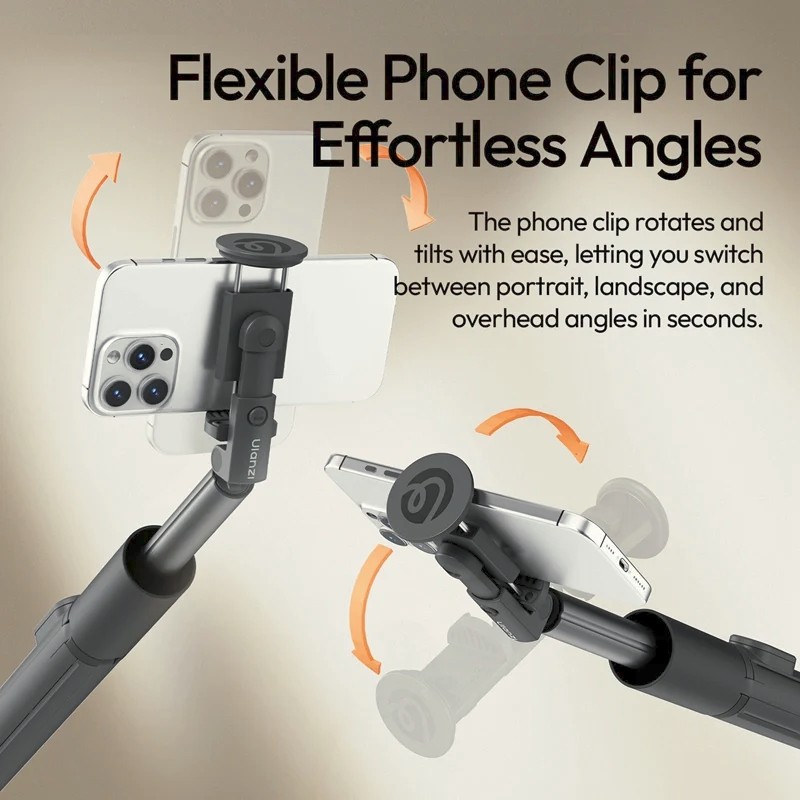 Ulanzi MT86 automatski telefonijski stativ u bijeloj boji dizajniran je za mobilne kreatore kojima je potrebna prenosivost bez kompromisa u stabilnosti. Njegov poboljšani dizajn s četiri noge i neklizajućim podlogama osigurava čvrsto postavljanje na bilo kojoj površini, dok se 8-dijelne podesive noge mogu protegnuti do 1,53 m u načinu rada kao stativ i 1,5 m u načinu rada selfie štapa. Stezaljka za telefon rotira se za ±90° i naginje za 90°, te podržava uređaje širine od 5,6 do 9,2 cm, što omogućuje brzo prebacivanje između portretnog, pejzažnog i gornjeg kuta snimanja. Ugrađena "cold shoe" nosačica pruža prostor za male svjetiljke ili mikrofone za poboljšanje vaše opreme za snimanje. Stativ ima automatski mehanizam za brzo otvaranje nogu za trenutačno postavljanje i odvojivu Bluetooth daljinsku upravljačicu dometa do 10 m za bežično snimanje fotografija i videozapisa. Lagan, s težinom od 385 g, sklopiv na samo 32,5 cm i kompatibilan s uređajima koji koriste iOS, Android i HarmonyOS, MT86 je savršen za putovanja, sadržaj za društvene mreže i snimanje u pokretu.