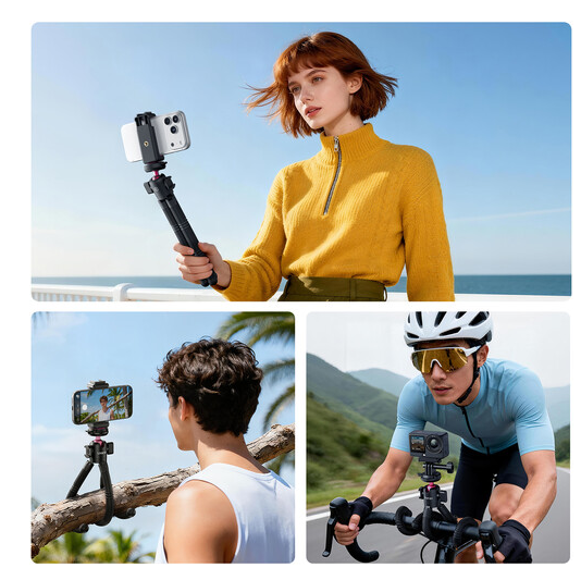 Njegove tri fleksibilne, vodootporne i otporne na koroziju noge mogu se omotati oko stupova, ograda, grana ili neravnih površina, omogućujući korisnicima snimanje iz jedinstvenih i kreativnih kutova gdje se standardni stativi ne mogu koristiti. To ga čini posebno korisnim za snimanje na otvorenom, putni sadržaj i dinamične vlogerske postavke.