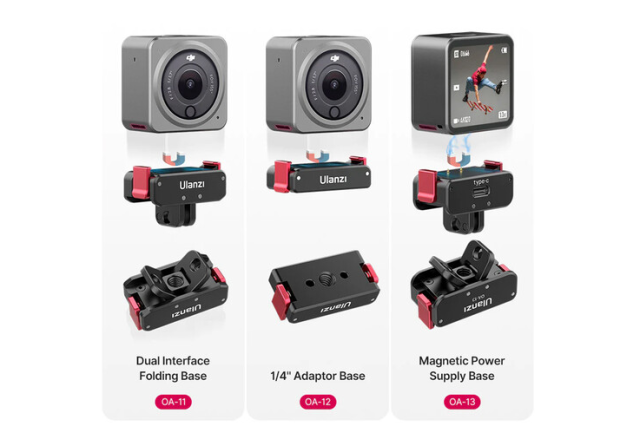 Specijalno dizajnirana za DJI Action 2, Ulanzi 2843A baza s dvostrukim sučeljem i sklopivim dizajnom poboljšava vaše mogućnosti montaže kamere. Priključak se sigurno pričvršćuje na vašu kameru pomoću magnetske baze i dvije kopče, a istovremeno nudi dvostruke mogućnosti montaže: priključak s dvije grane kompatibilan s nosačima u GoPro stilu i sklopivu navojnu bazu 1/4"-20, idealnu za stative, artikulirane ruke ili druge nosače.