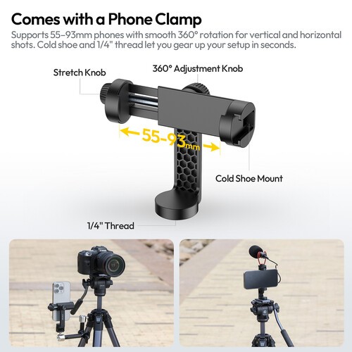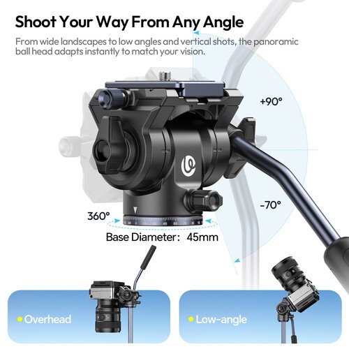Ombra Video II XIANG aluminijski stativ s fluidnom glavom tvrtke Ulanzi je lagani stativ za snimanje videa u pokretu. S fluidnom glavom nosivosti 6,6 lb, panoramskim okretanjem od 360° i nagibom od +90/-75°, jednostavno je montirati kameru na priloženu ploču za brzo otpuštanje tipa Arca i poravnati savršen snimak. Noge s pet dijelova imaju nosivost od 10 kg, a s potpuno izvučenim središnjim stupom, podižu kameru na visinu od 157 cm. Za stabilnost, stativ ima šiljaste nožice i protuuteg na središnjem stupu, koji se također može preokrenuti za niske kutove. Stativ se sklapa na malih 49 cm i ima 1/4"-20 ARRI otvor za lociranje i stezaljku za telefon za dodatnu montažu pribora.