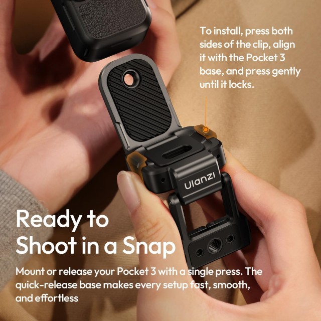 Ulanzi PK16 magnetska baza s brzim otpuštanjem omogućuje brzo i svestrano montiranje vašeg DJI Pocket 3 ili Feiyu Pocket 3, omogućujući brzo pričvršćivanje na stative, metalne površine ili druge nosače. Njezin magnetski dizajn osigurava sigurno postavljanje, a istovremeno pruža fleksibilnost za kreativne kutove snimanja.