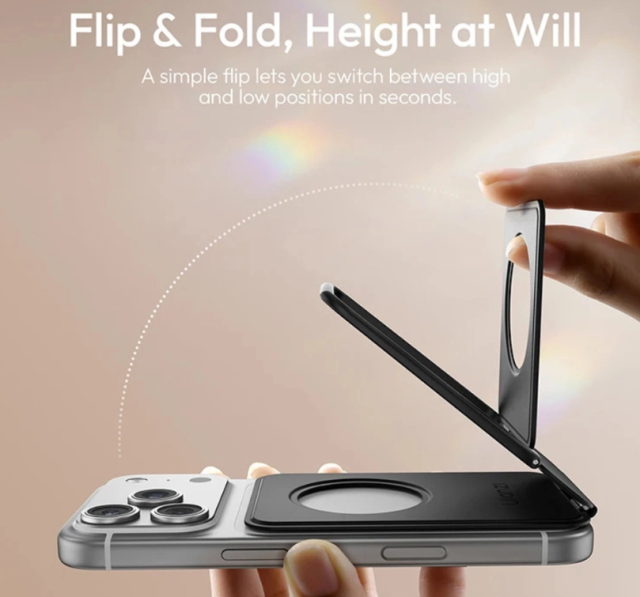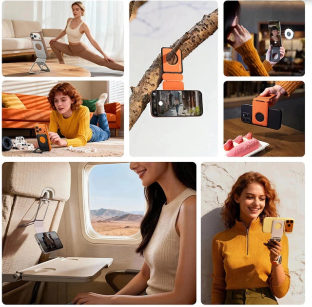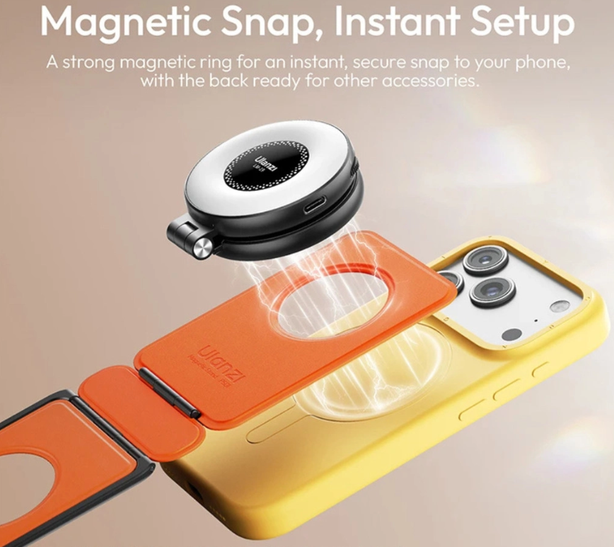 Stalak za telefon Ulanzi PS01 MagSnap spaja stil, prenosivost i funkcionalnost u ultra-tankom dizajnu. Debljine samo 0,7 cm i težine od samo 63 g, 25–30 % je tanji od uobičajenih stalaka za telefone te se lako uklapa u futrolu za laptop ili torbu. Njegov snažni magnetski prsten odmah pričvršćuje vaš telefon za siguran oslonac – bez potrebe za stezanjem ili podešavanjem. PS01 nudi tri načina rada: niski stol, visoki stol i viseći, prilagođavajući se svakom postavu za mobilnu fotografiju, vloganje ili prijenos uživo. Izrađen od aluminija i veganske kože, izdržljiv je, otporan na ogrebotine, neklizajući i udoban za držanje. Stražnja strana stalka može se proširiti dodacima kao što su LED svjetlo LM23 ili MagSafe CM56 prsten, čime se povećavaju vaše kreativne mogućnosti. Dostupan u više boja, uključujući slonovu sivu, PS01 je dizajniran da se besprijekorno uklopi u vaš mobilni radni tok.