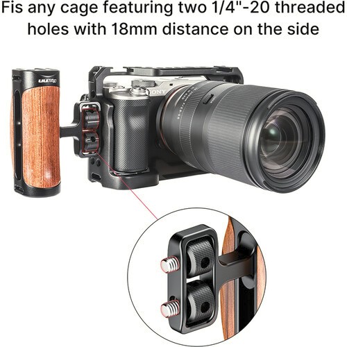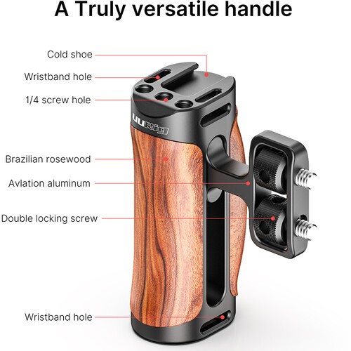 Ulanzi R075 univerzalna drška za lijevu/desnu ruku od drveta spaja vrhunsko brazilsko ružino drvo s aluminijem zrakoplovne kvalitete kako bi pružila udoban i siguran hvat uz svestrane mogućnosti montaže na okvire kamere.