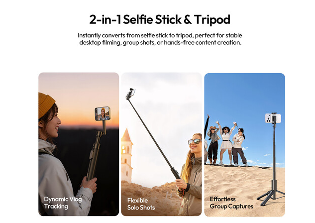 Ulanzi SK27 prijenosni selfie stick s tronožcem je višenamjenski alat za stvaranje sadržaja dizajniran za pametne telefone, koji nudi i prenosivost i fleksibilnost snimanja na profesionalnoj razini. Njegov 2-u-1 dizajn omogućuje trenutačni prijelaz između ručnog selfie sticka i stabilnog tronožca, što ga čini pogodnim za vloganje, prijenose uživo, grupne fotografije i solo snimanje.